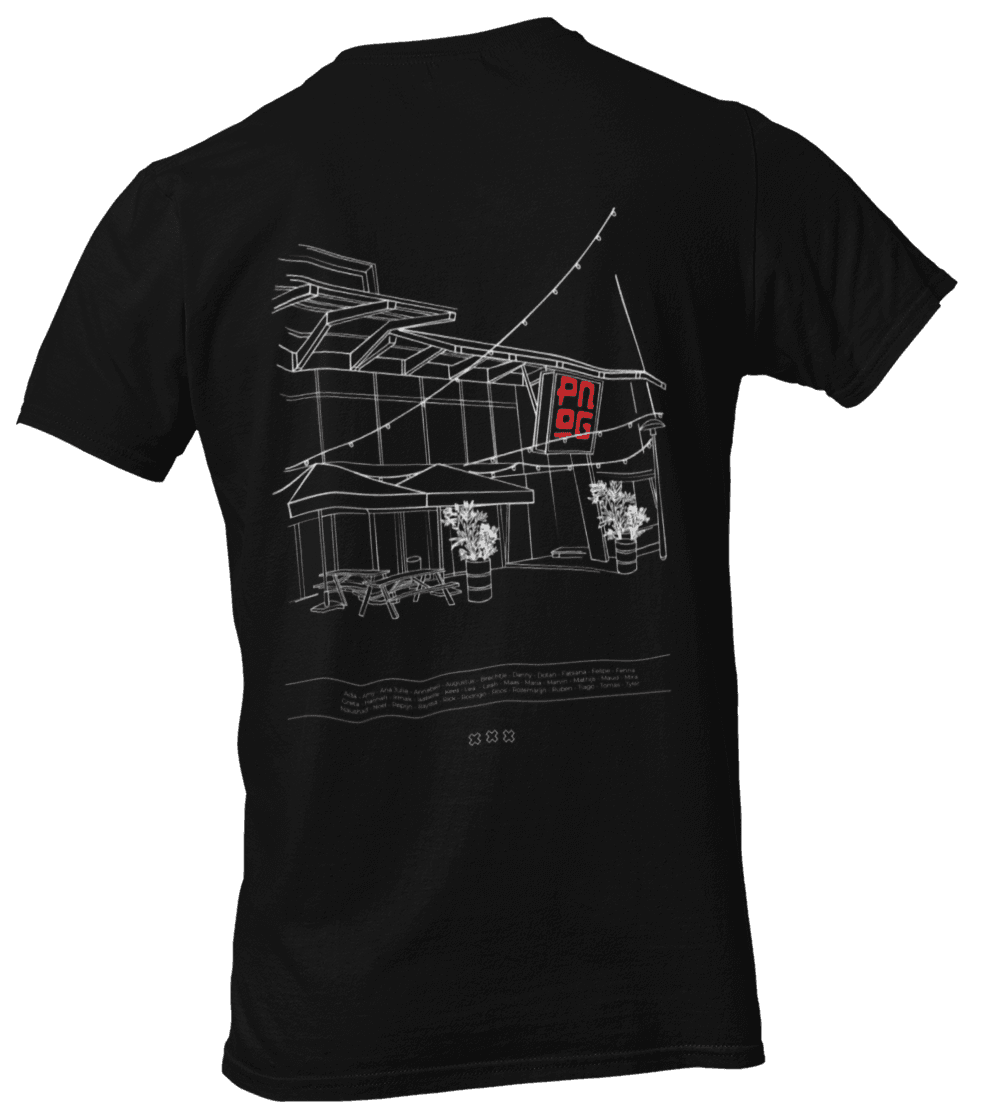 Voor Pong is een shirt ontworpen dat persoonlijkheid en subtiliteit combineert. De namen van alle medewerkers zijn verwerkt in het ontwerp, met op de voor- en achterkant een verfijnde verwijzing naar het bedrijf. Het resultaat is een stijlvol shirt dat zowel op het werk als in de vrije tijd gedragen kan worden.