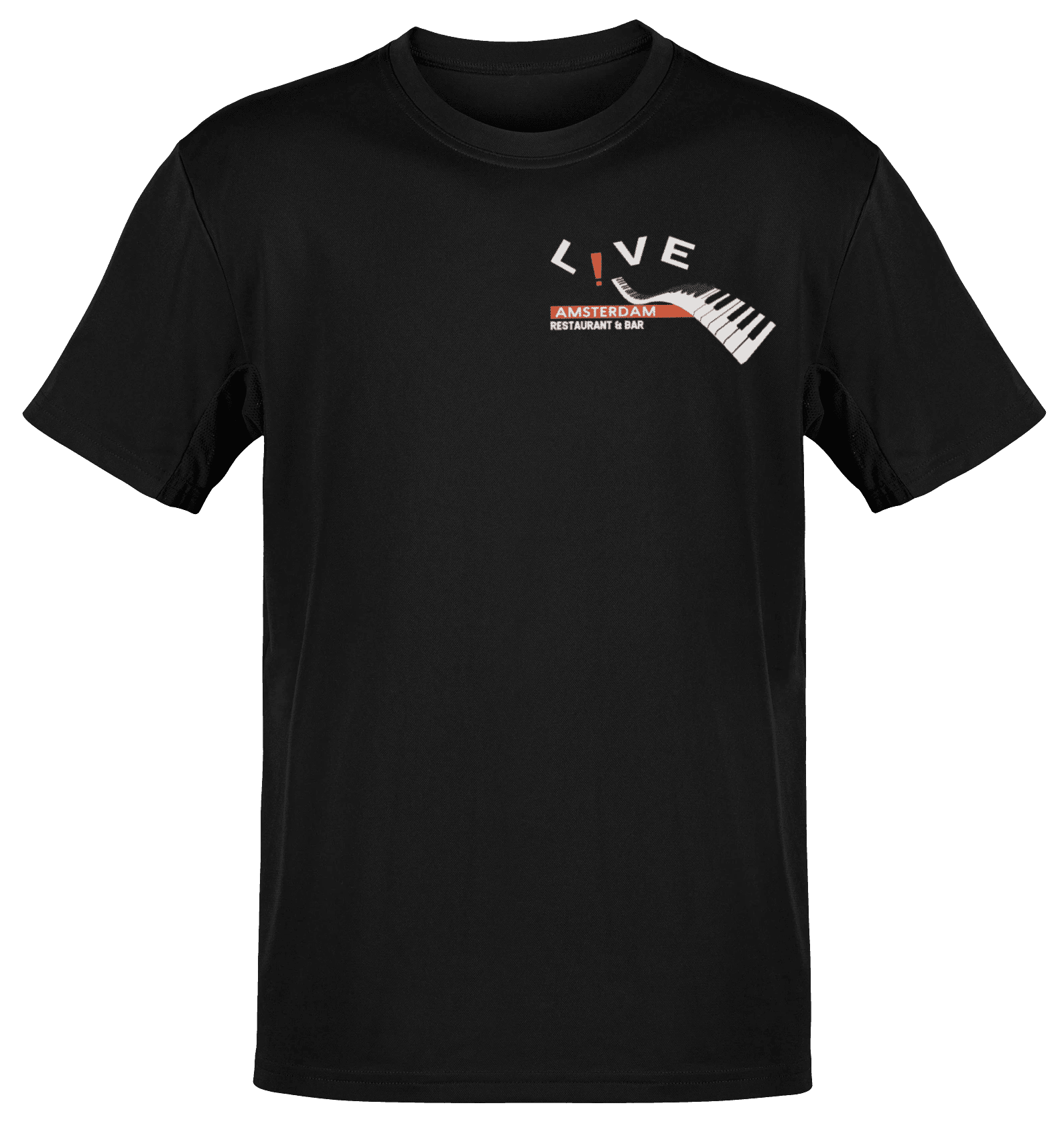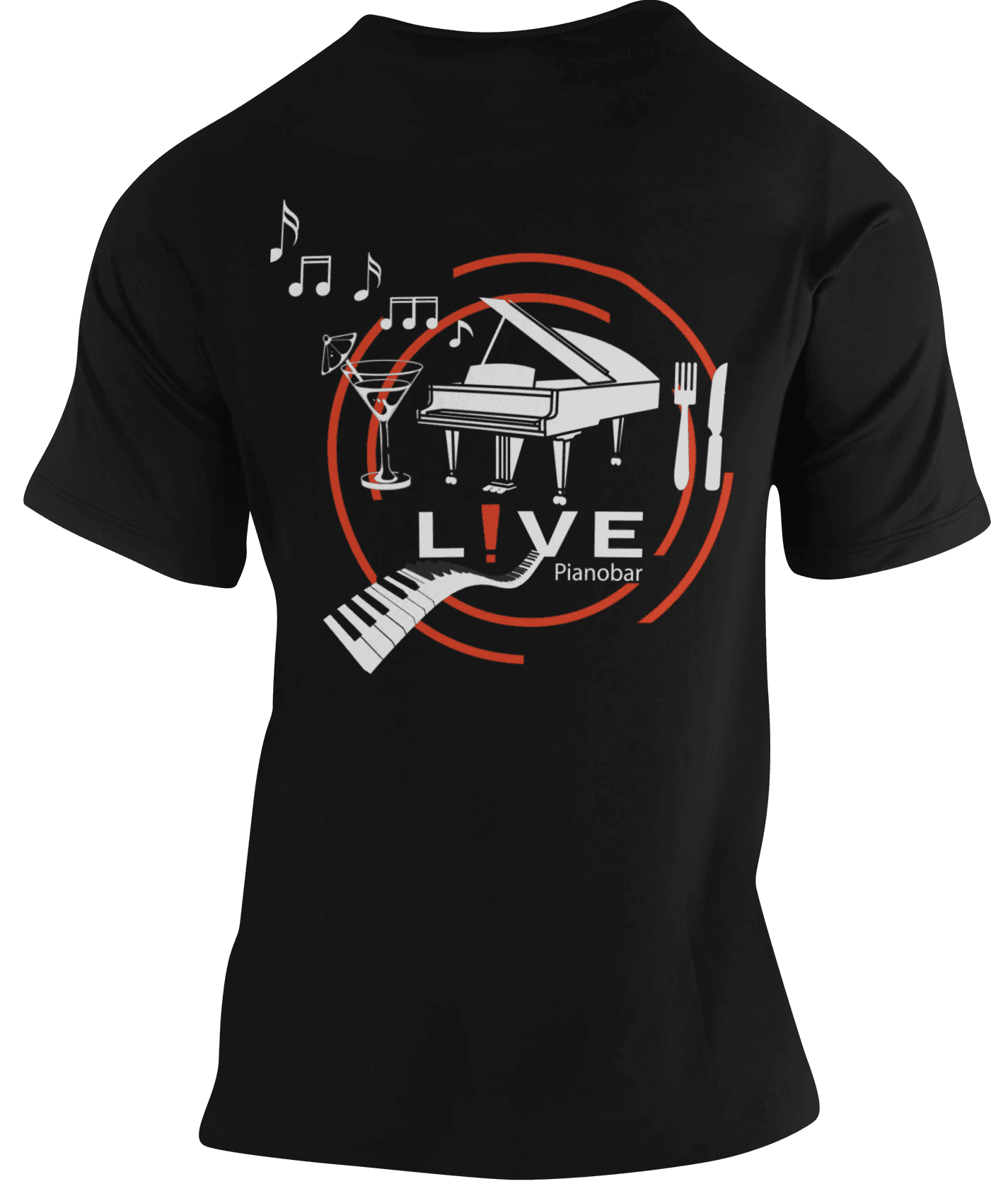 Een drankje inschenken of een dansje serveren: het team van de live pianobar doet het in stijl. Voor dit T-shirt hebben we het logo in een nieuw jasje gestoken en de identiteit van het café vertaald naar een eigentijds ontwerp. Het shirt sluit perfect aan bij de sfeer van de pianobar en draagt bij aan de totale beleving voor de gasten.
